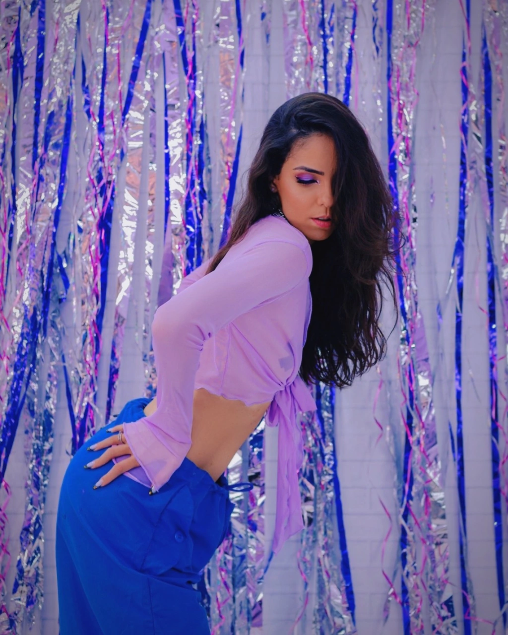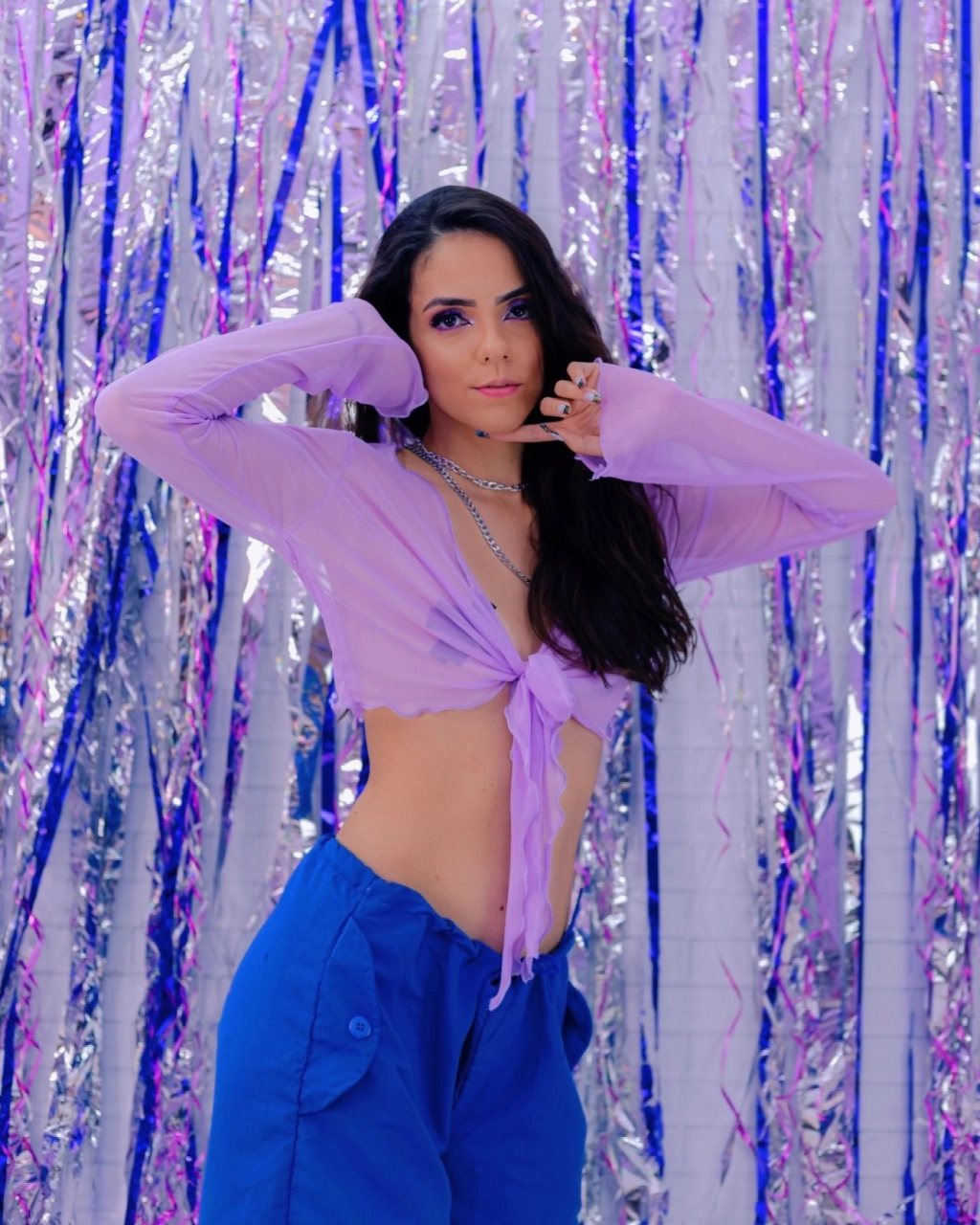 Cropped manga longa frufru tule